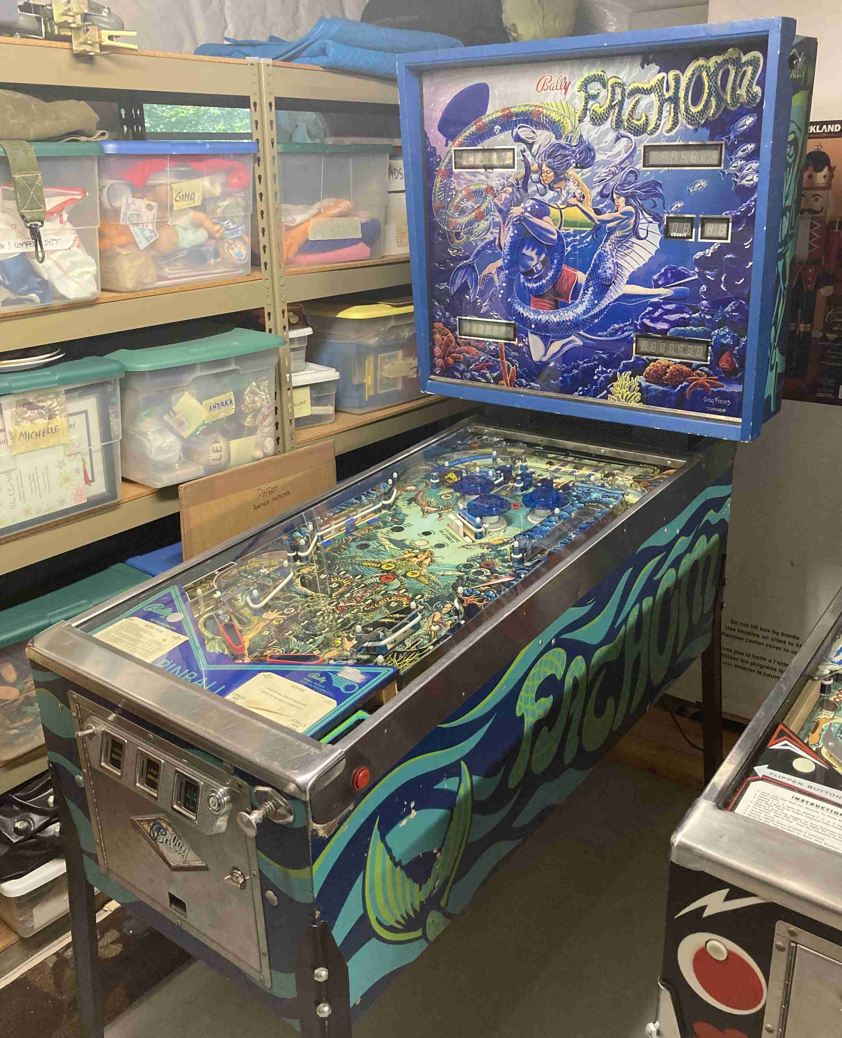 * Big Time repro Fathom cabinet (note: someone started a restoration project with that cabinet but gave up and sent everything to Hutchins. I bought the cabinet from Hutchins. It's in very nice shape but needs a few touchups.