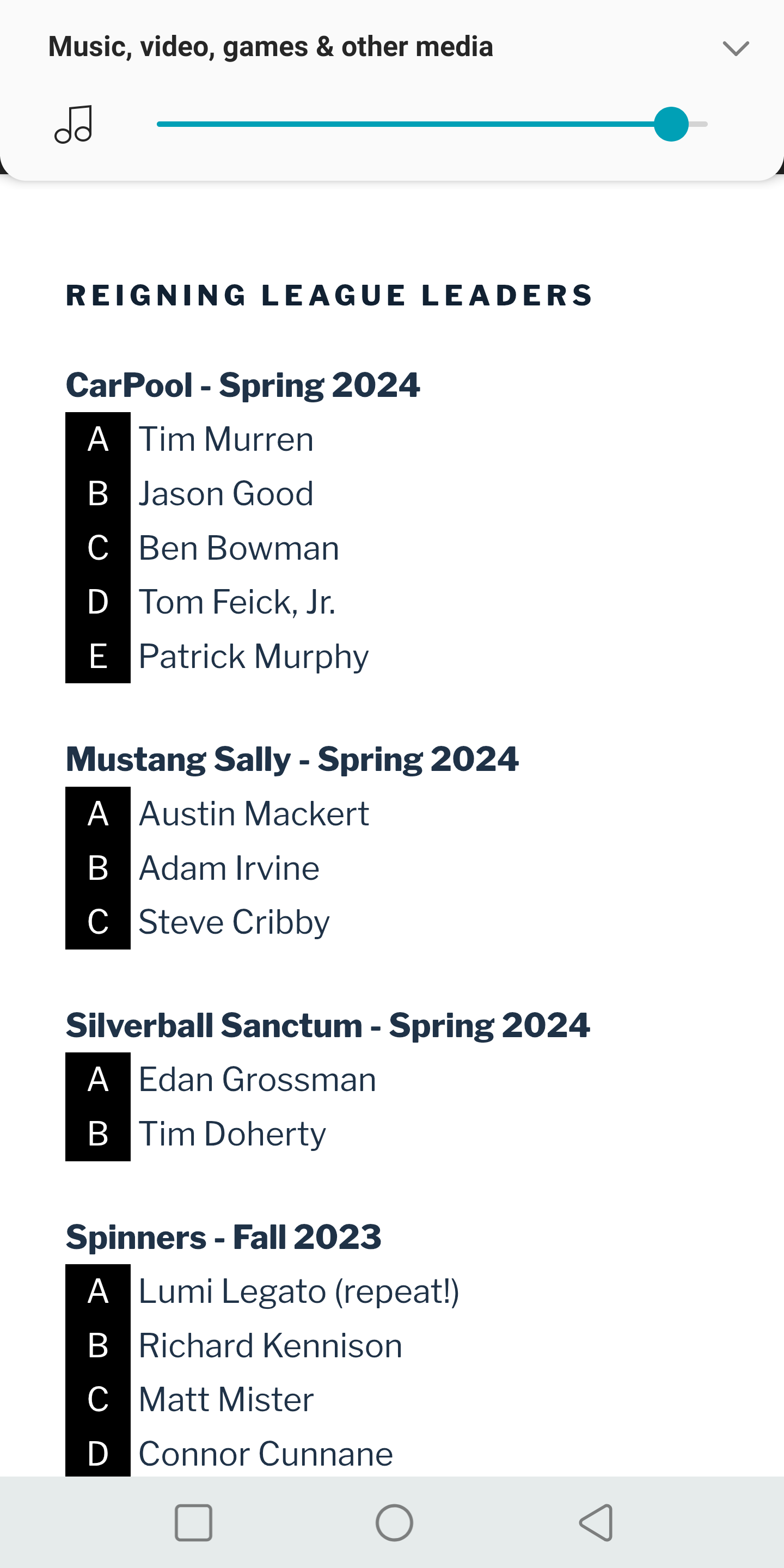 > The "Reigning League Leaders" on http://www.fspazone.org/ is woefully out